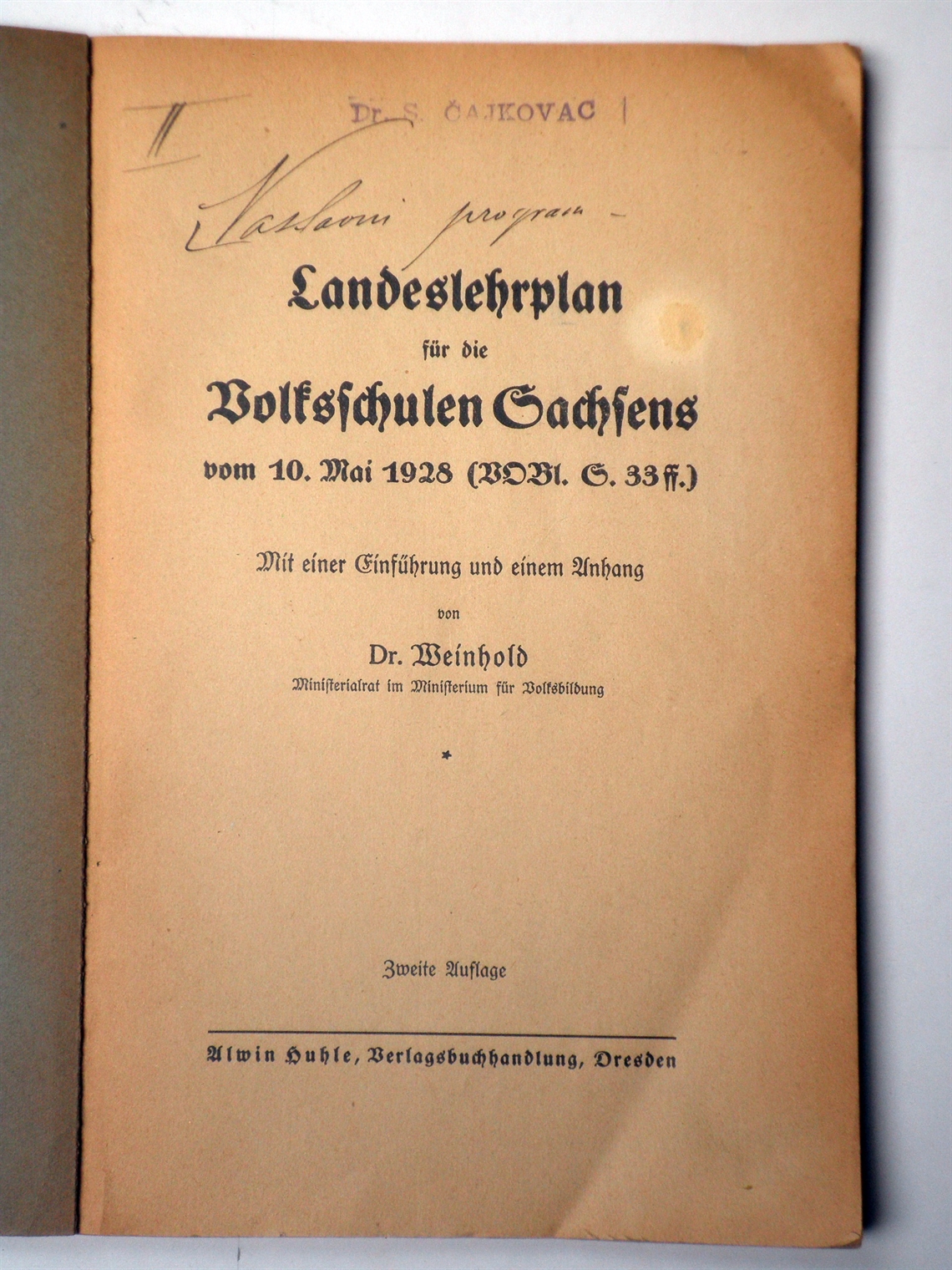 Landeslehrplan für die Volksschulen Sachsens vom 10. Mai 1928. / mi einer Einführung und einem Anhang von Dr. Weinhold