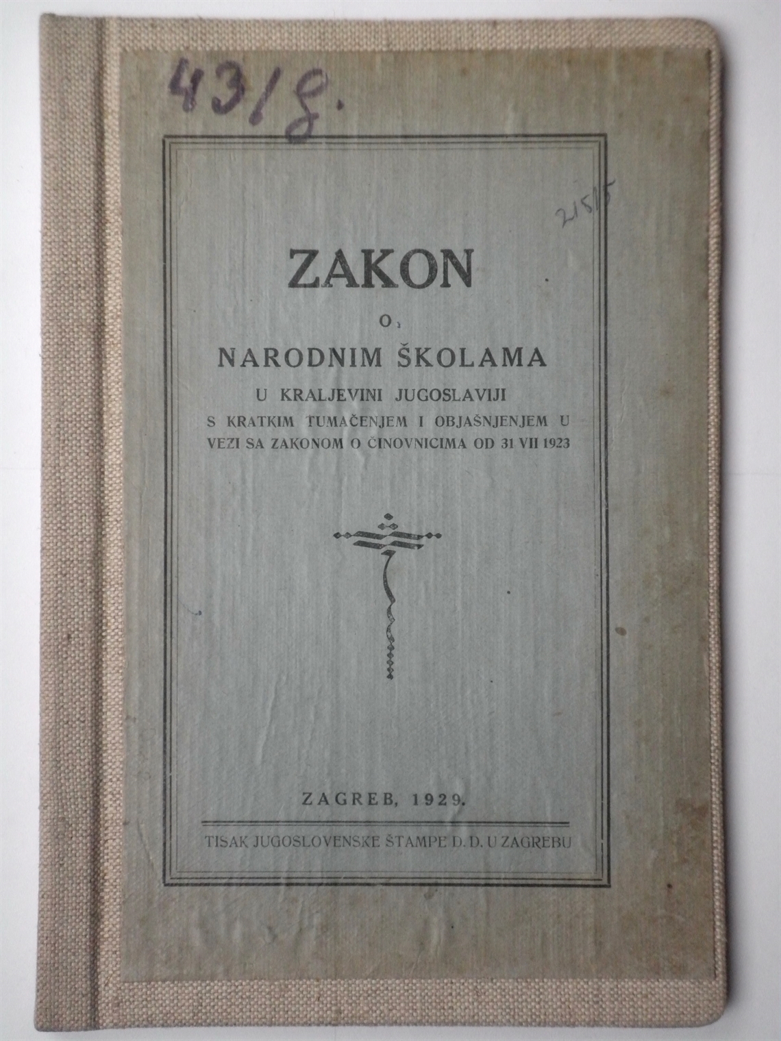 Zakon o narodnim školama u Kraljevini Jugoslaviji s kratkim tumačenjem i objašnjenjem u vezi sa Zakonom o činovnicima od 31 VII 1923