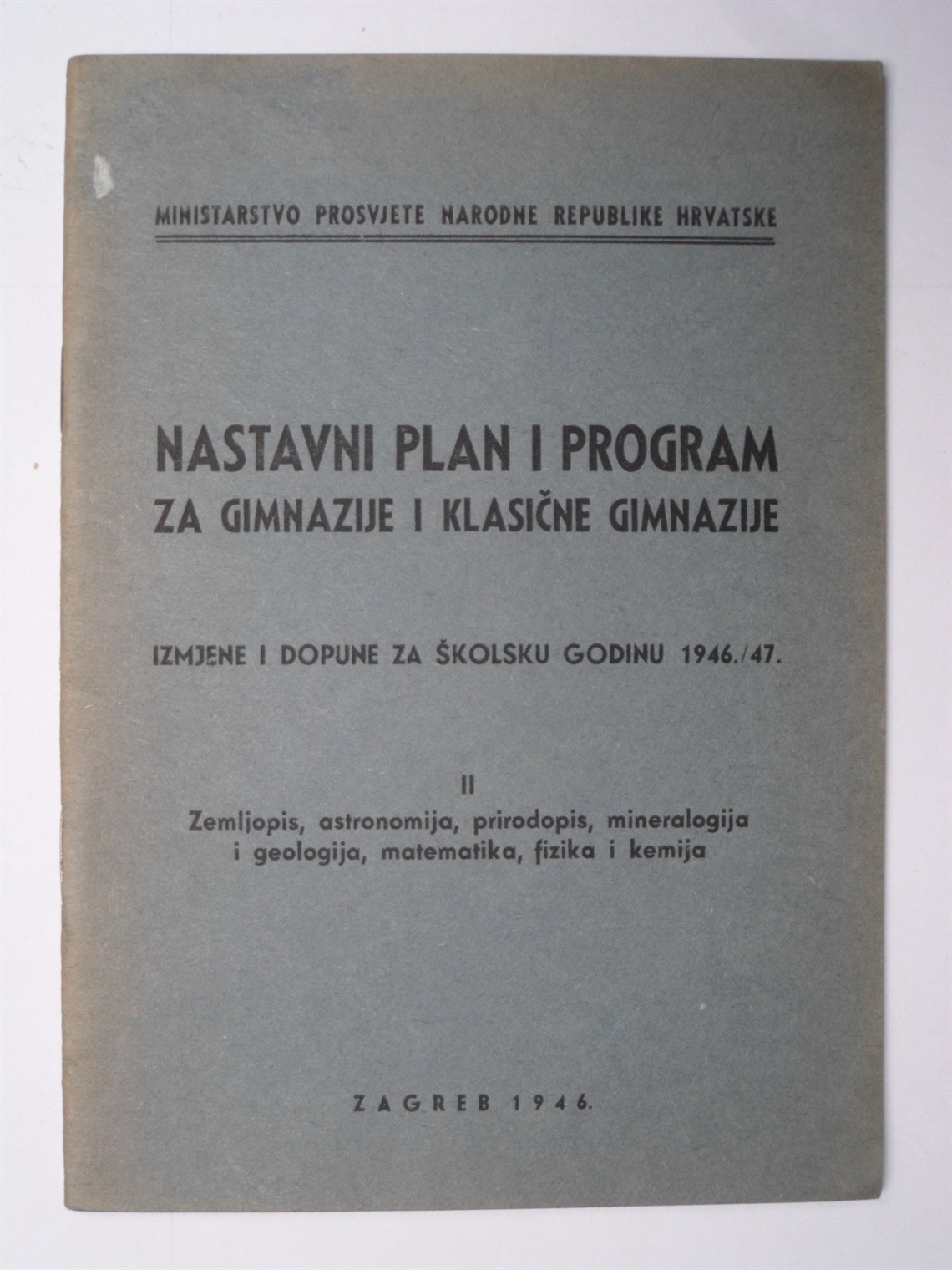Nastavni plan i program za gimnazije i klasične gimnazije : izmjene i dopune za školsku godinu 1946./47. II : zemljopis, astronomija, prirodopis, mineralogija i geologija, matematika, fizika i kemija