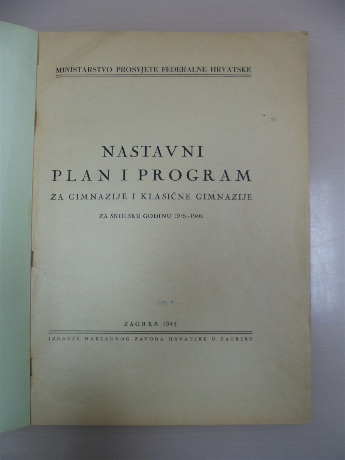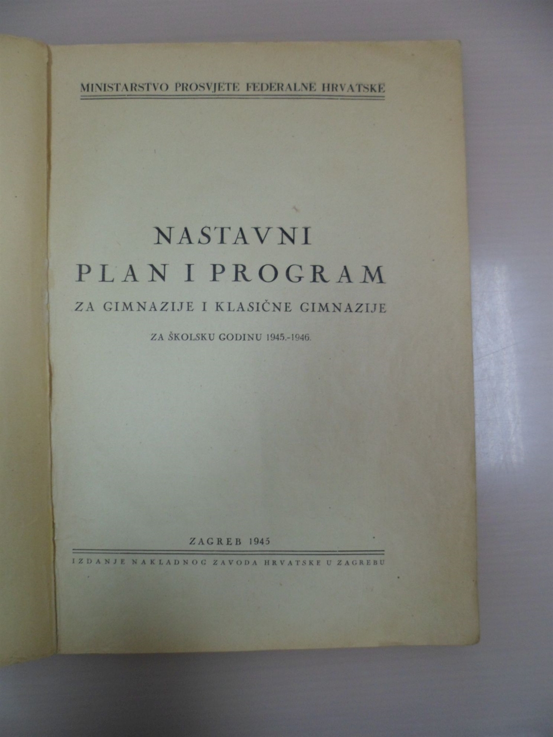 Nastavni plan i program za gimanzije i klasične gimnazije : za školsku godinu 1945.-1946.