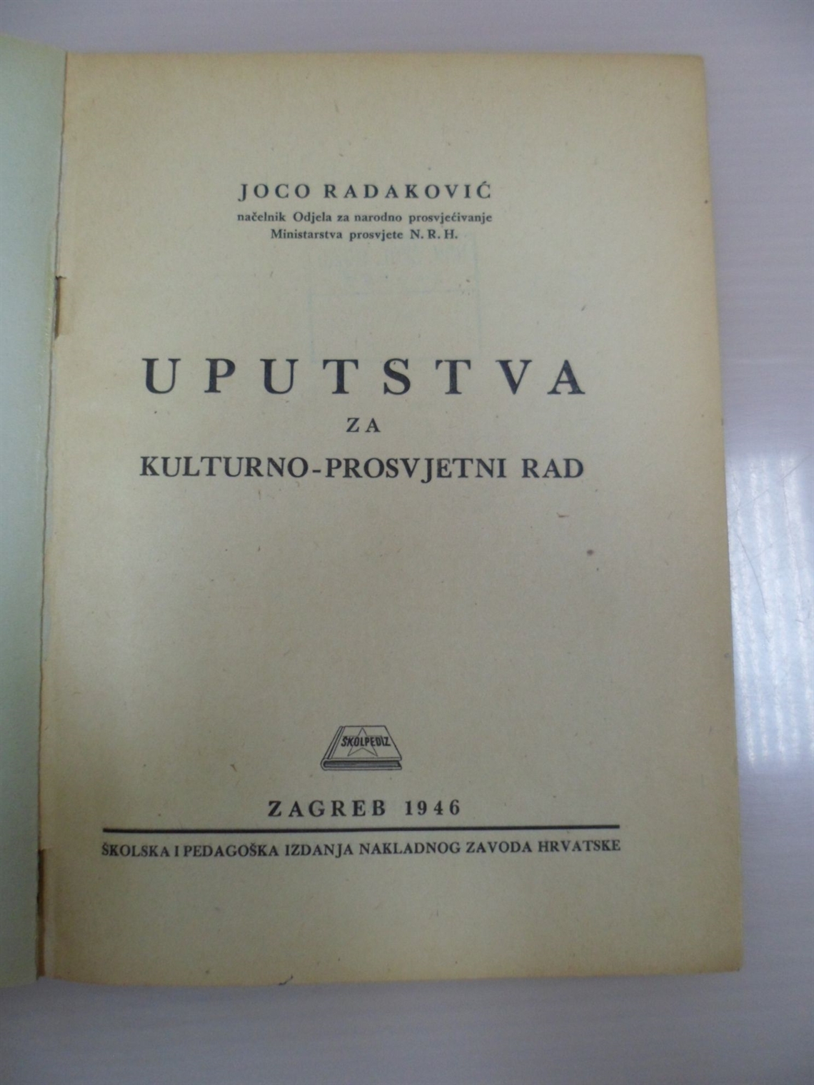Uputstva za kulturno-prosvjetni rad / Joco Radaković