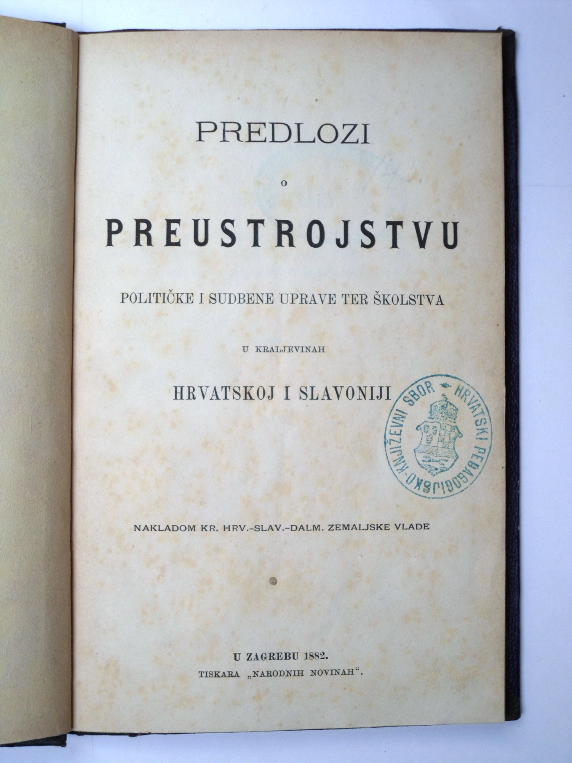 Predlozi o preustrojstvu političke i sudbene uprave ter školstva u kraljevinah Hrvatskoj i Slavoniji